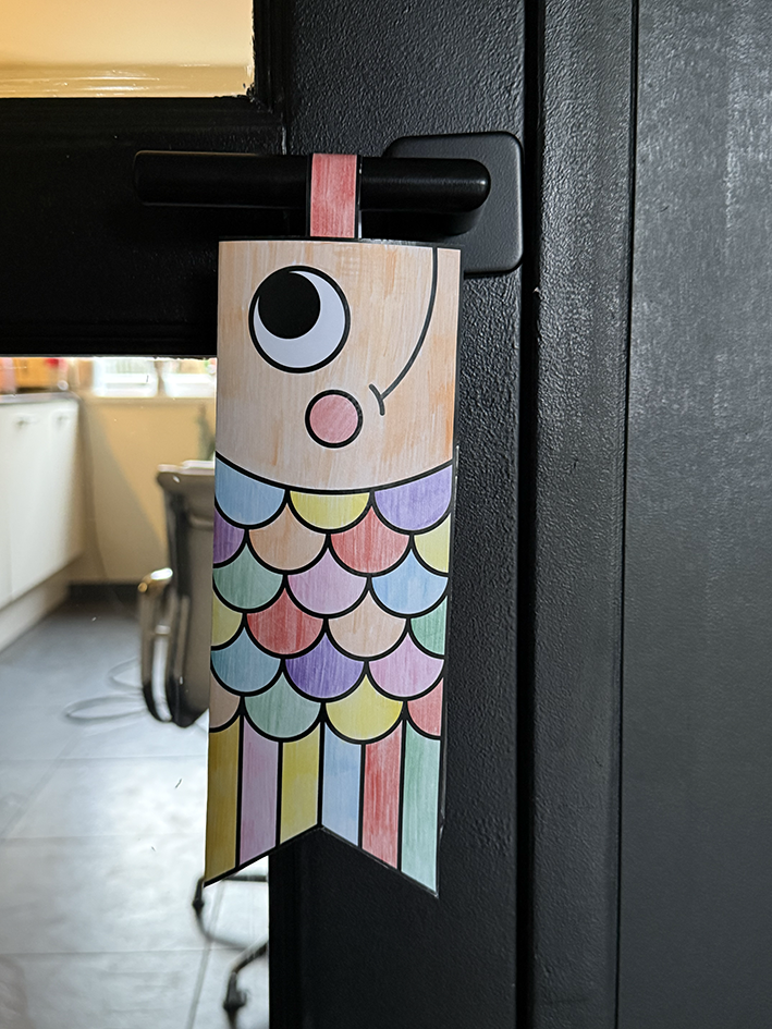 Download, print, kleur en plak je eigen koinobori, een Japanse karpervlag,